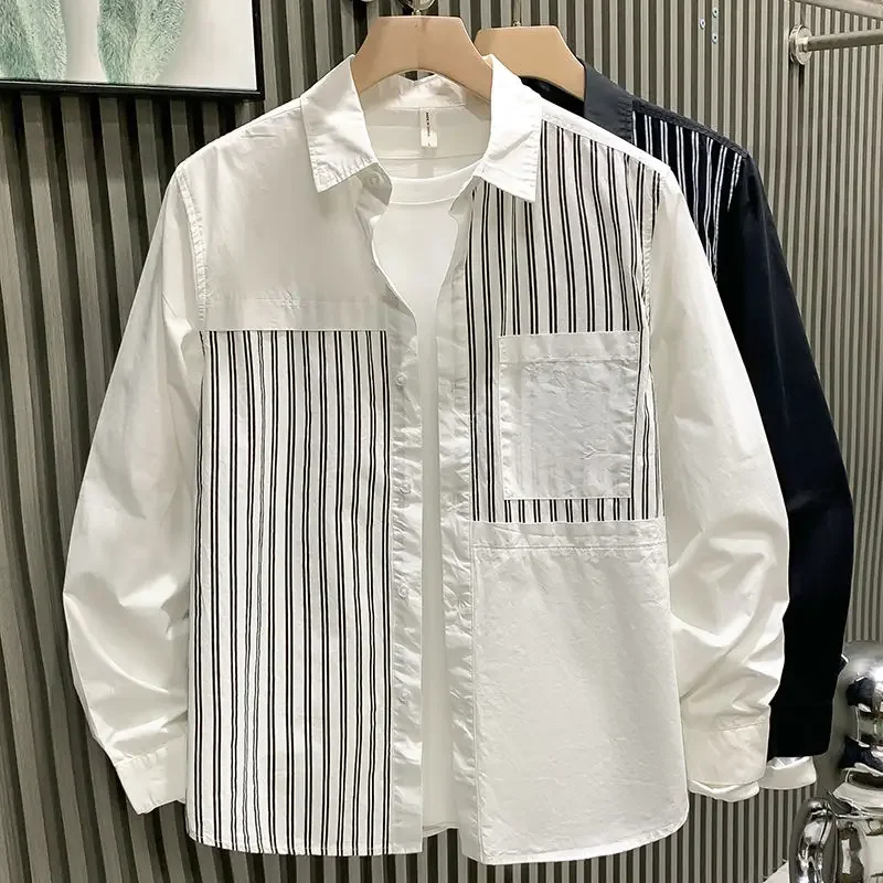 2025 Trendy Brand Autumn Long-sleeved Shirt for Men Striped Trendy Loose and Versatile Cardigan