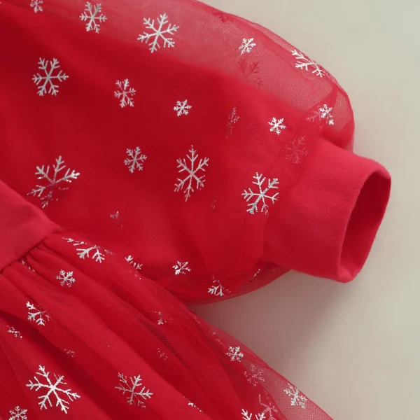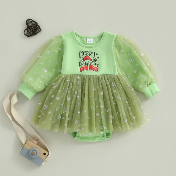 Baby Girls Christmas Romper Dress Long Sleeve Round Neck Tulle Patchwork Romper