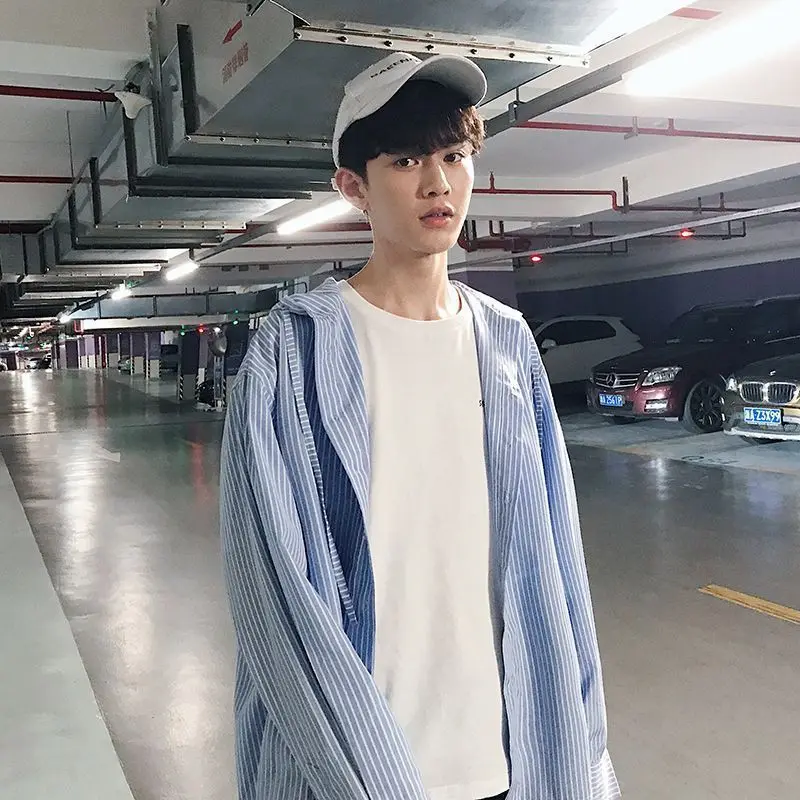 Schreibe die erste Rezension für „Chic Men Korean Style Trendy Hooded Loose Striped Long Sleeve Shirt Thin Jacket“