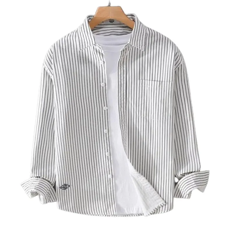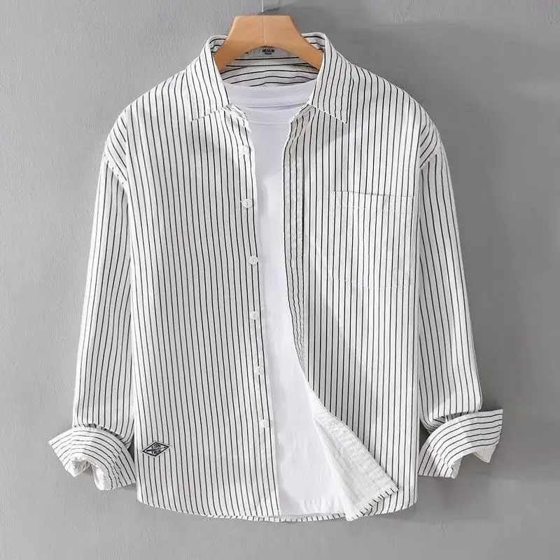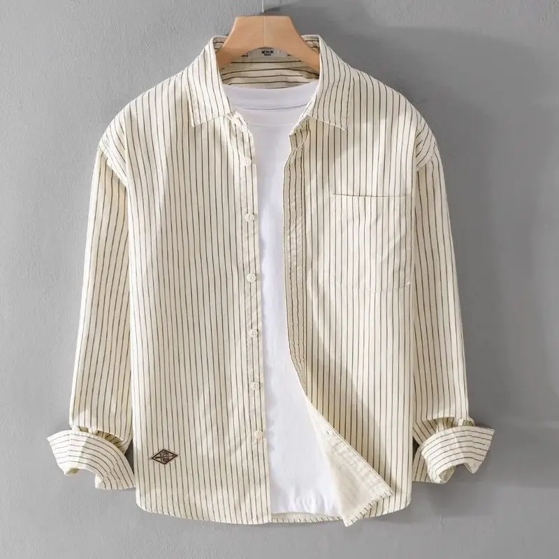 Elegant Fashion Harajuku Slim Fit All Match Shirt Square Neck Stripe Button Long Sleeve Outerwear Loose Casual Male Clothes