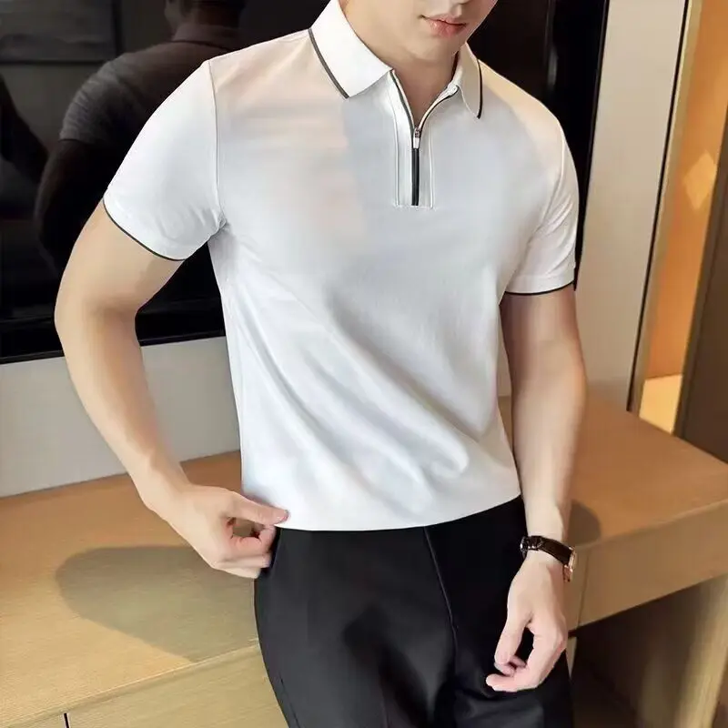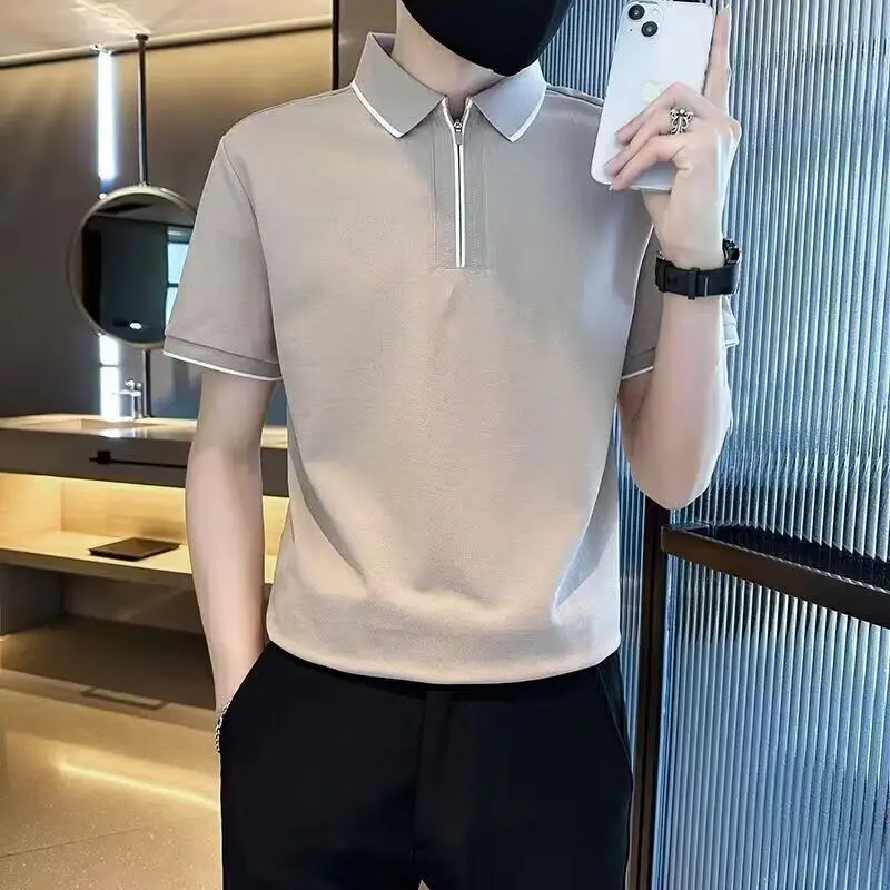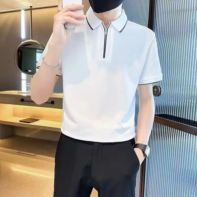 Men Half-zipper Polo Shirt Short-sleeved Summer Lapel Half-sleeved T-shirt Temperament Top