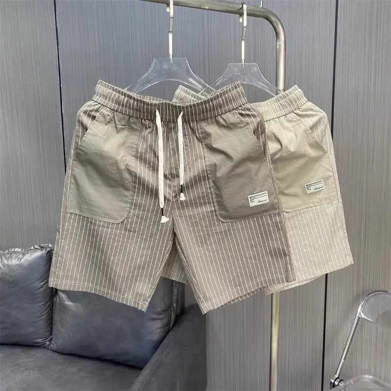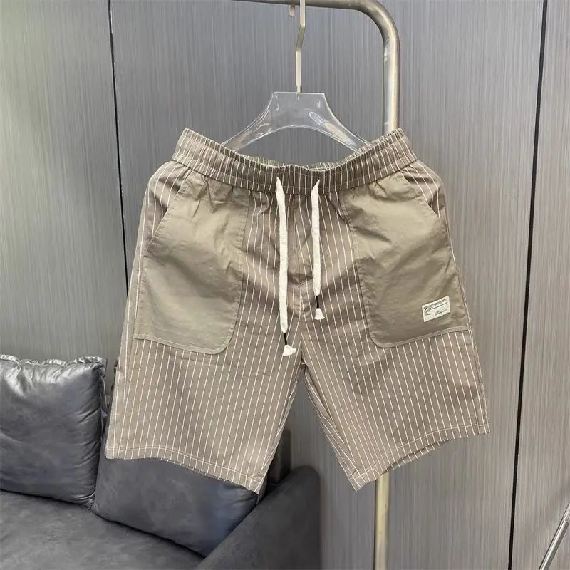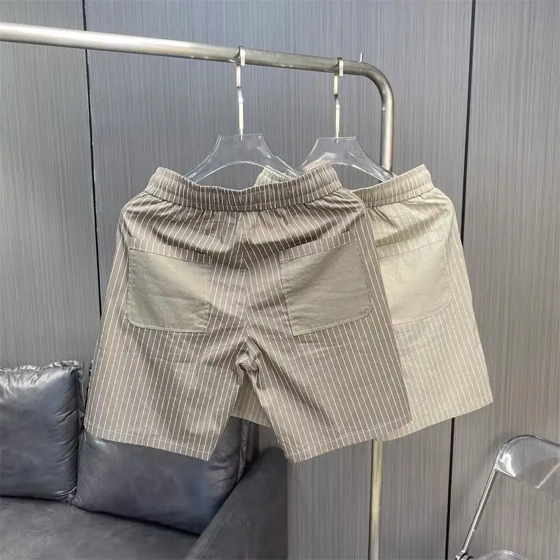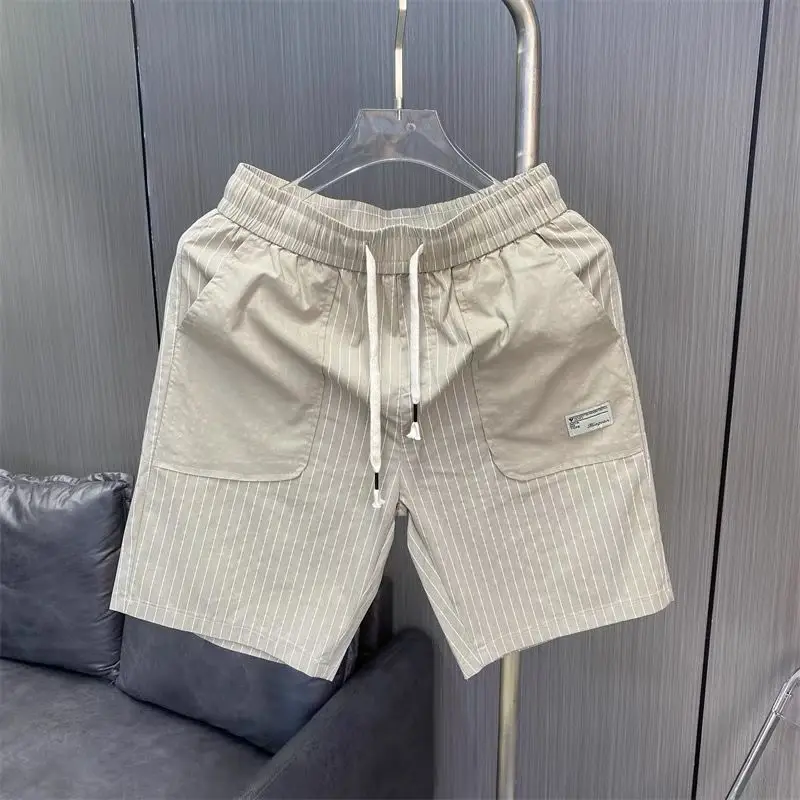 Men Summer Work Style Thin Casual Loose Striped Straight Five-point Pants