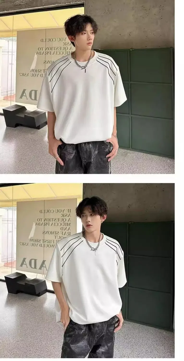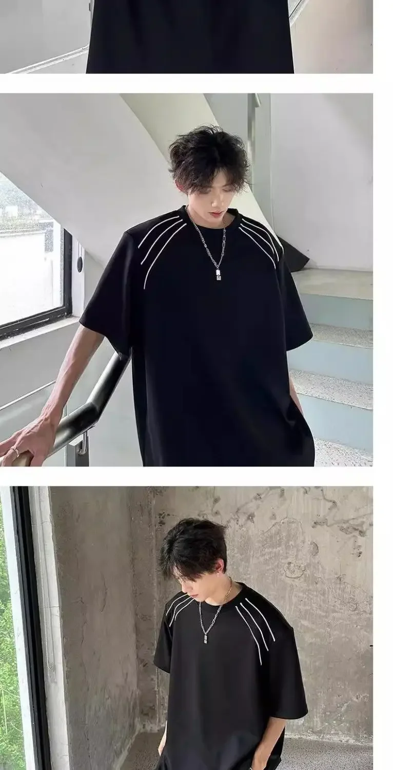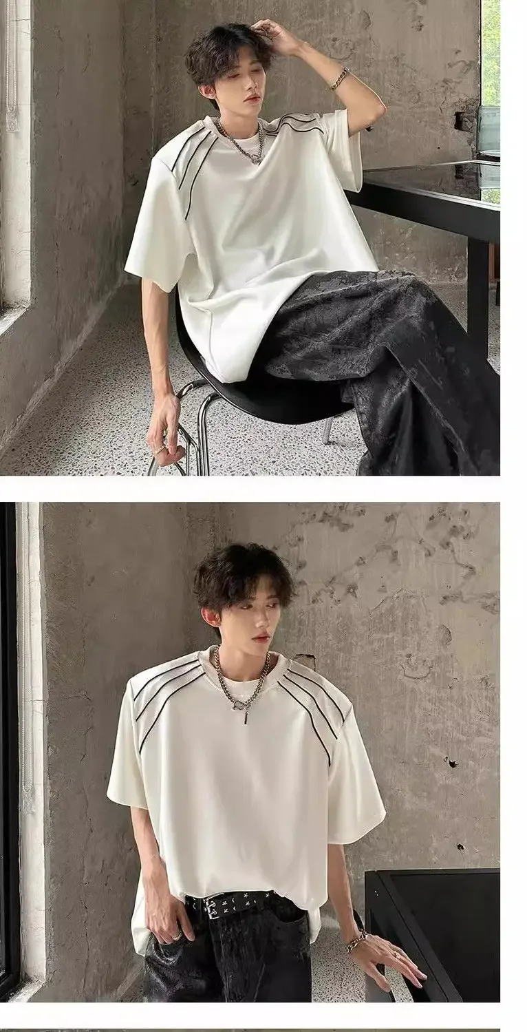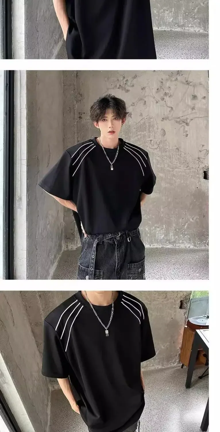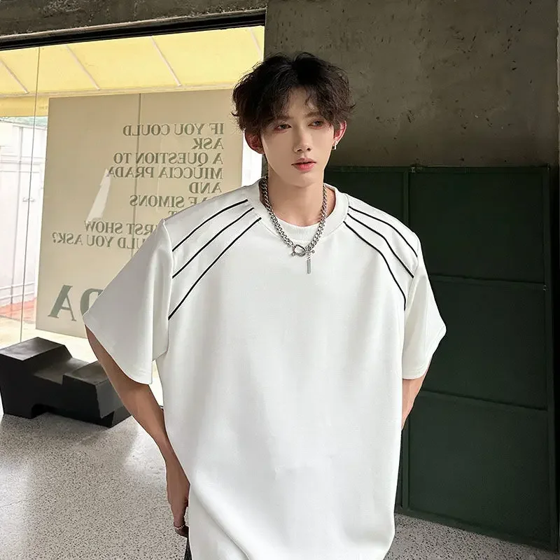 New Shoulder Pad T-shirt for Men Summer Short-sleeved Thin Five-point Sleeve Fashionable Round Neck Versatile Pullover