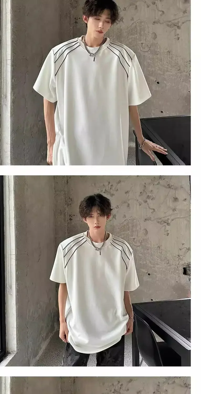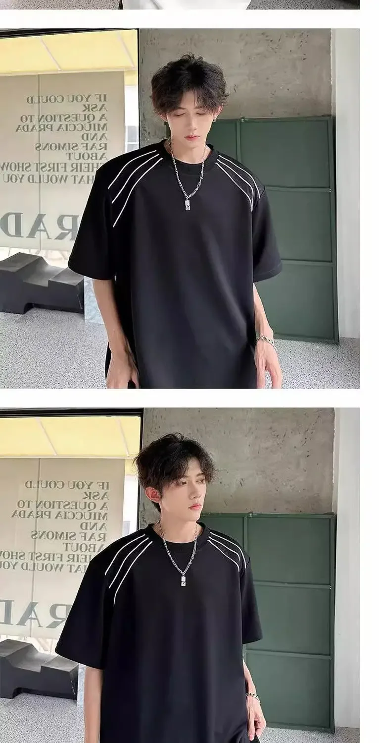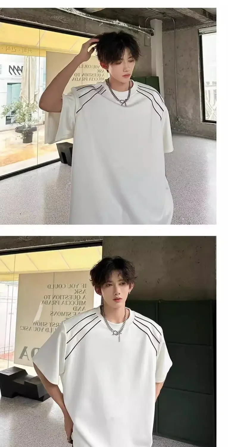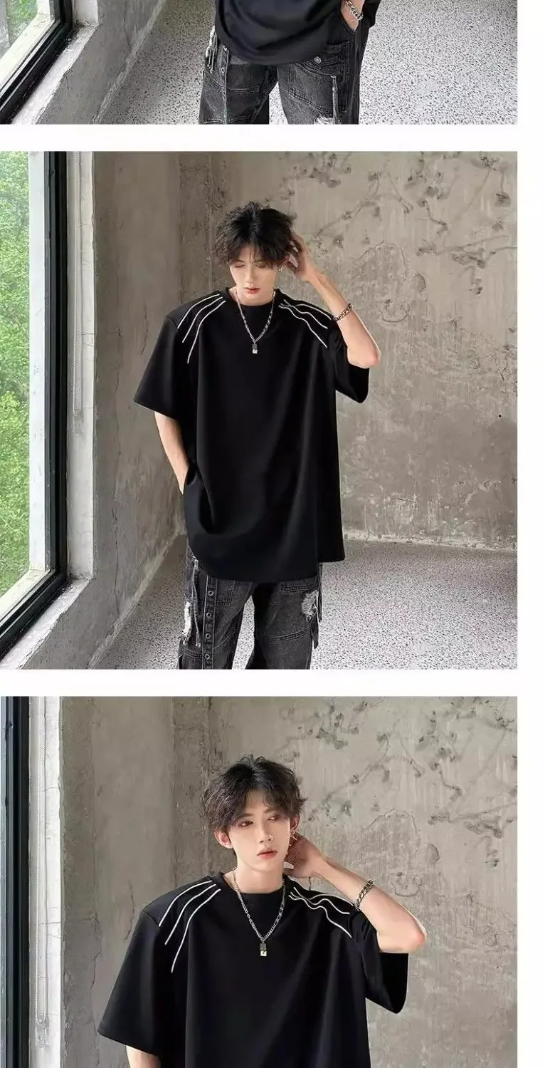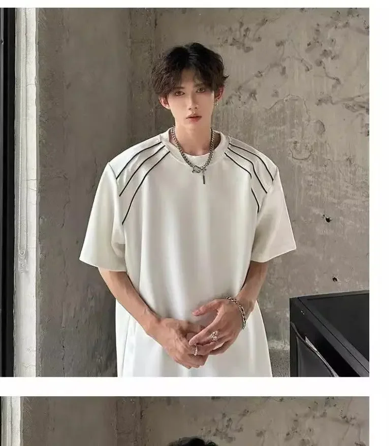 New Shoulder Pad T-shirt for Men Summer Short-sleeved Thin Five-point Sleeve Fashionable Round Neck Versatile Pullover