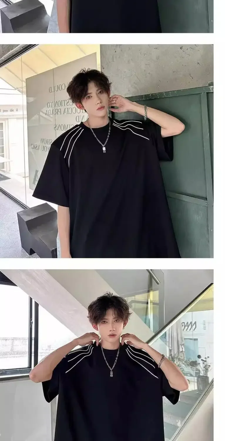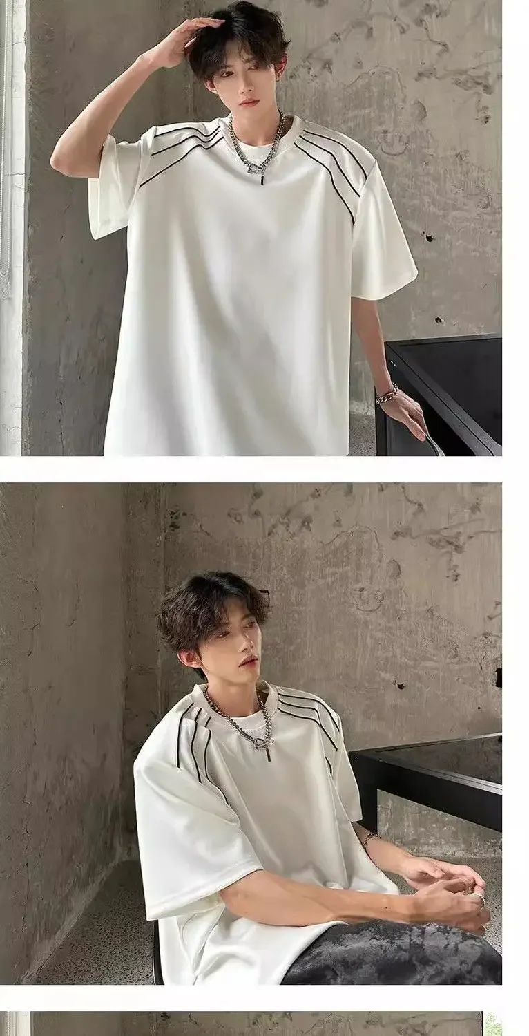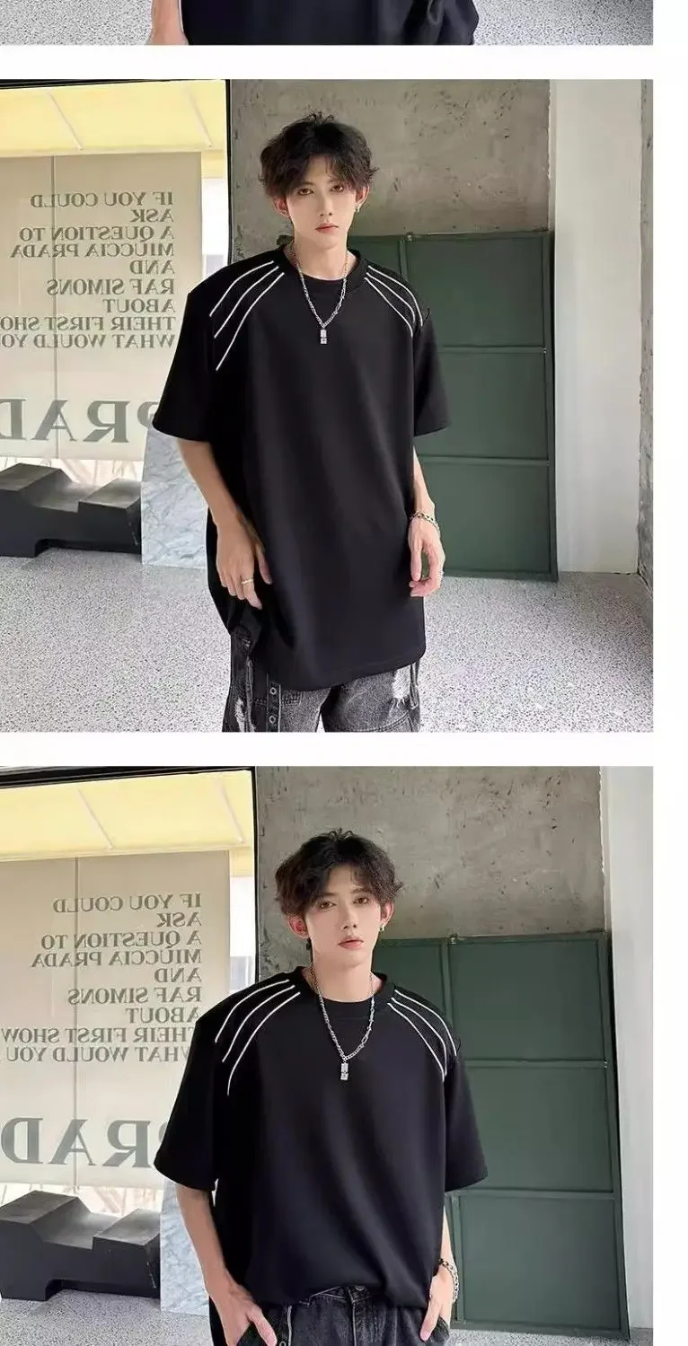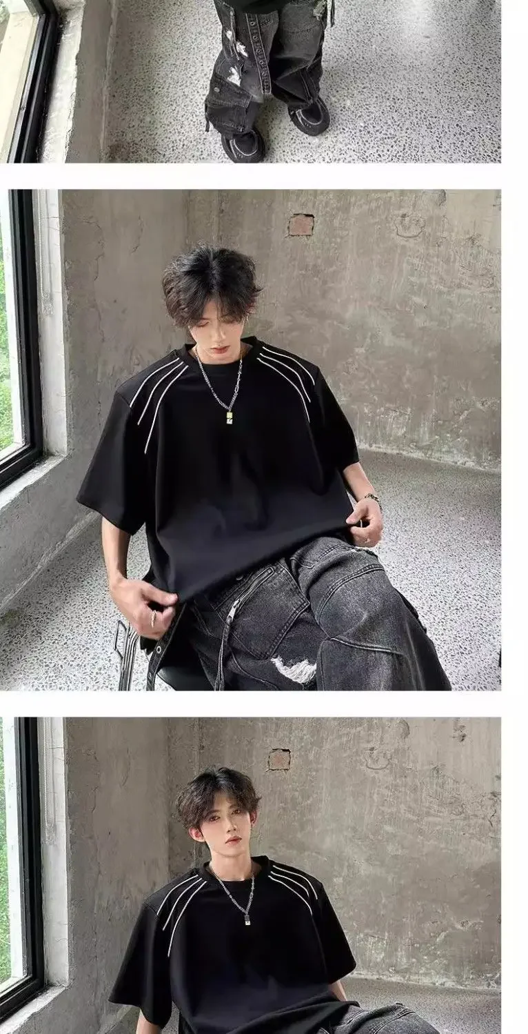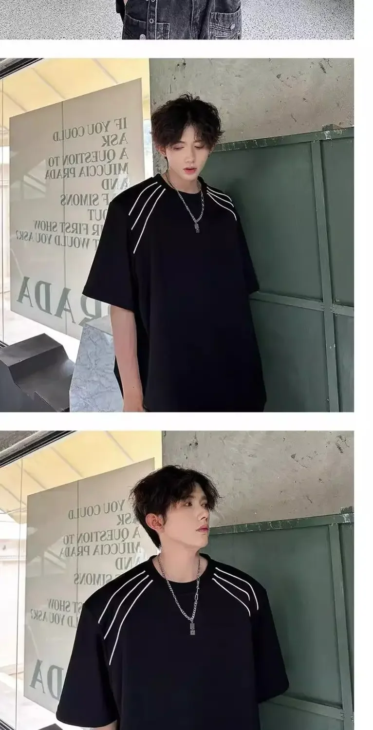 New Shoulder Pad T-shirt for Men Summer Short-sleeved Thin Five-point Sleeve Fashionable Round Neck Versatile Pullover