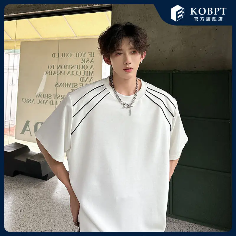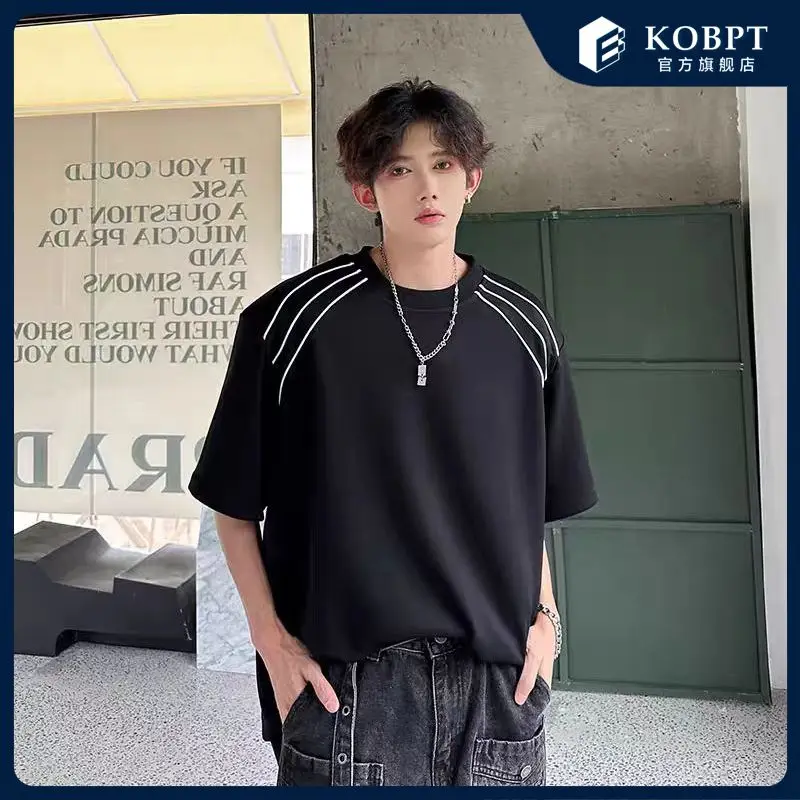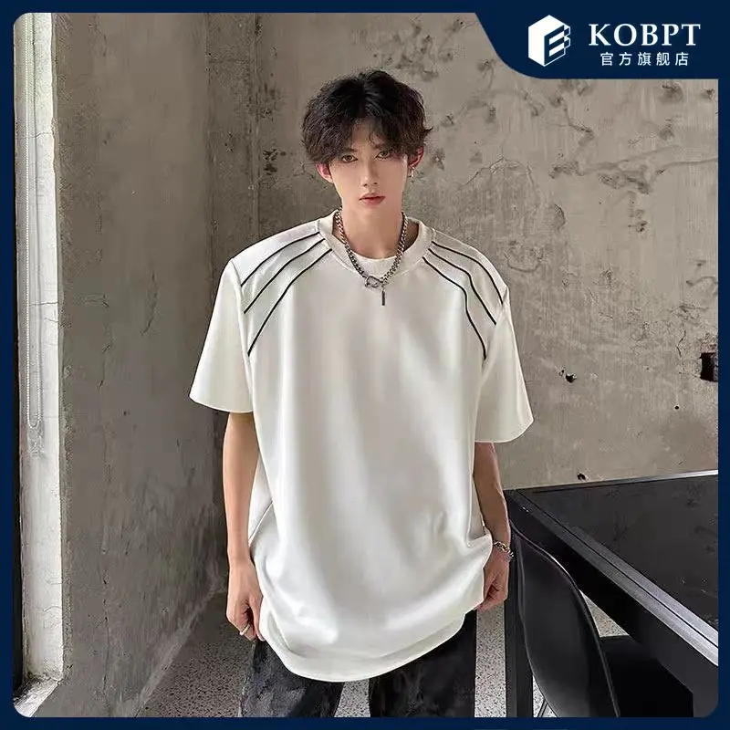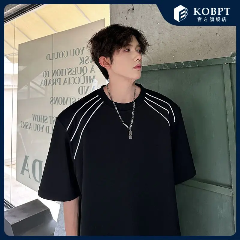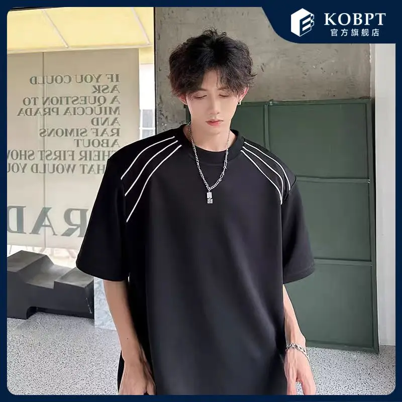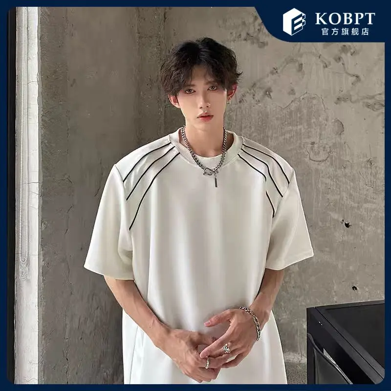 New Shoulder Pad T-shirt for Men Summer Short-sleeved Thin Five-point Sleeve Fashionable Round Neck Versatile Pullover