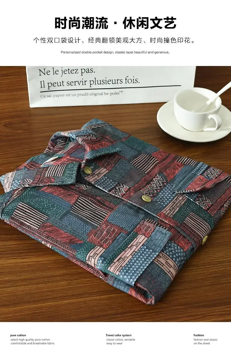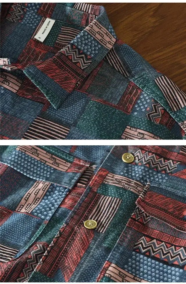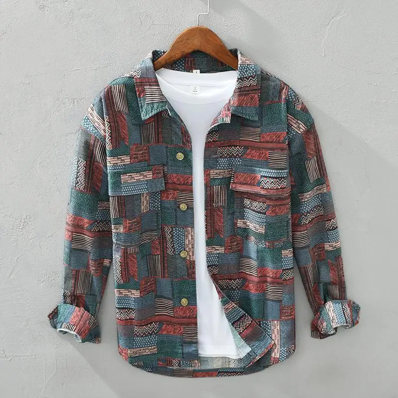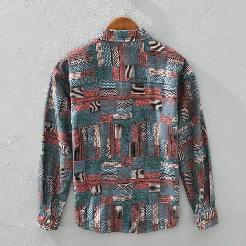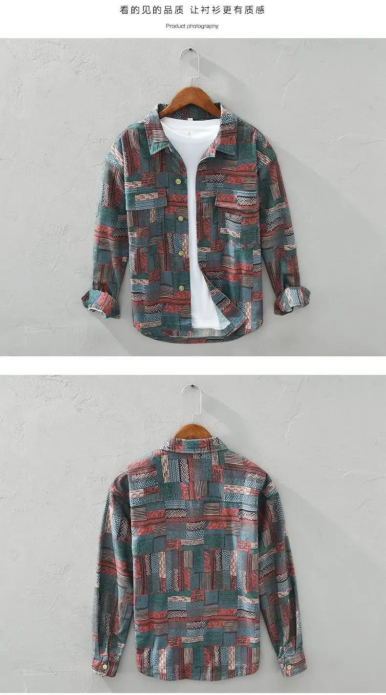 Retro Ethnic Style Shirt Jacket Men Loose Japanese Full-print Plaid Cardigan Long-sleeved Plaid Shirt Spring and Autumn