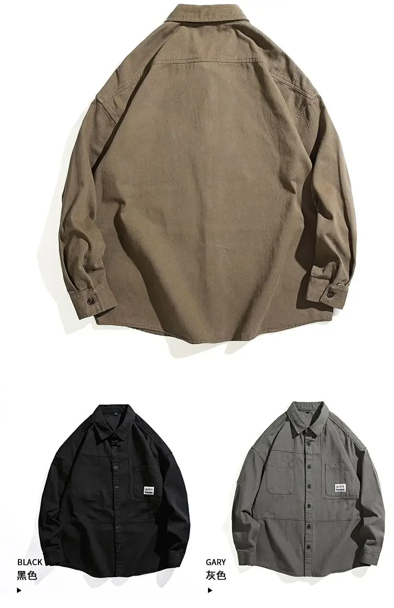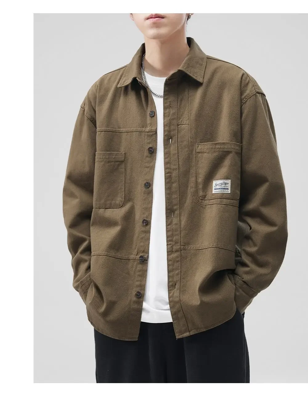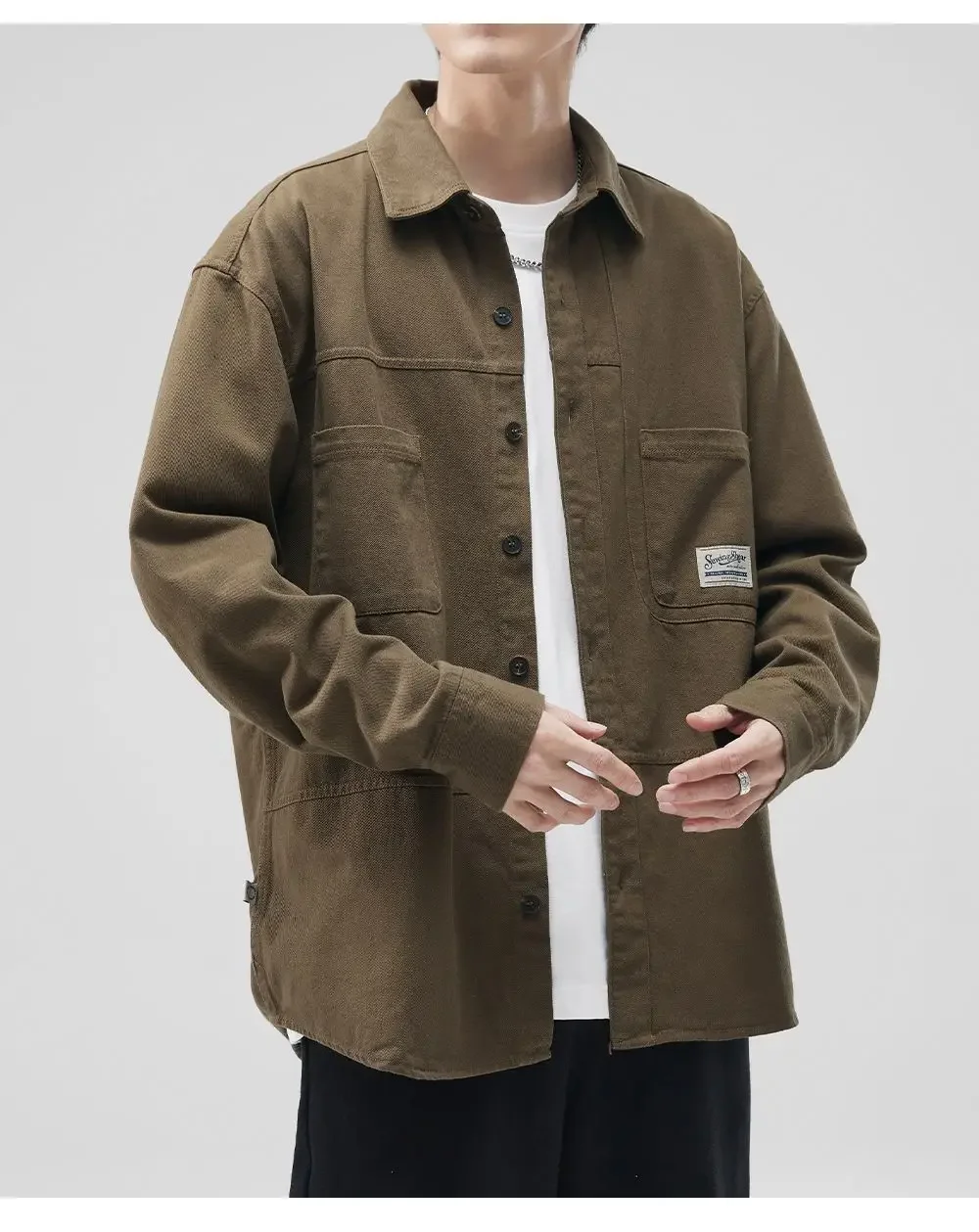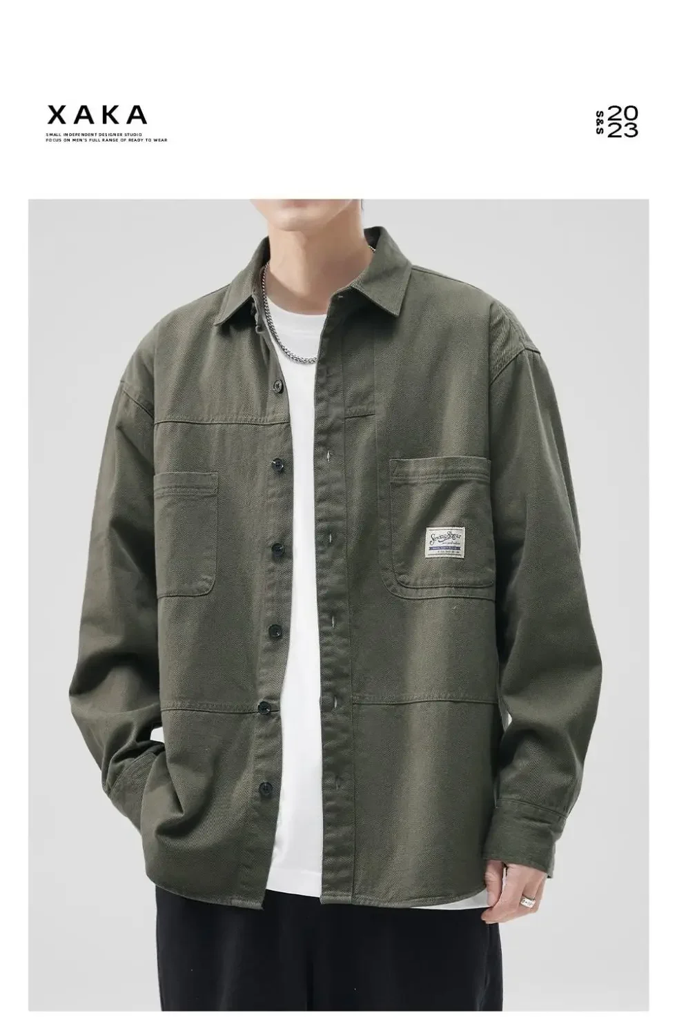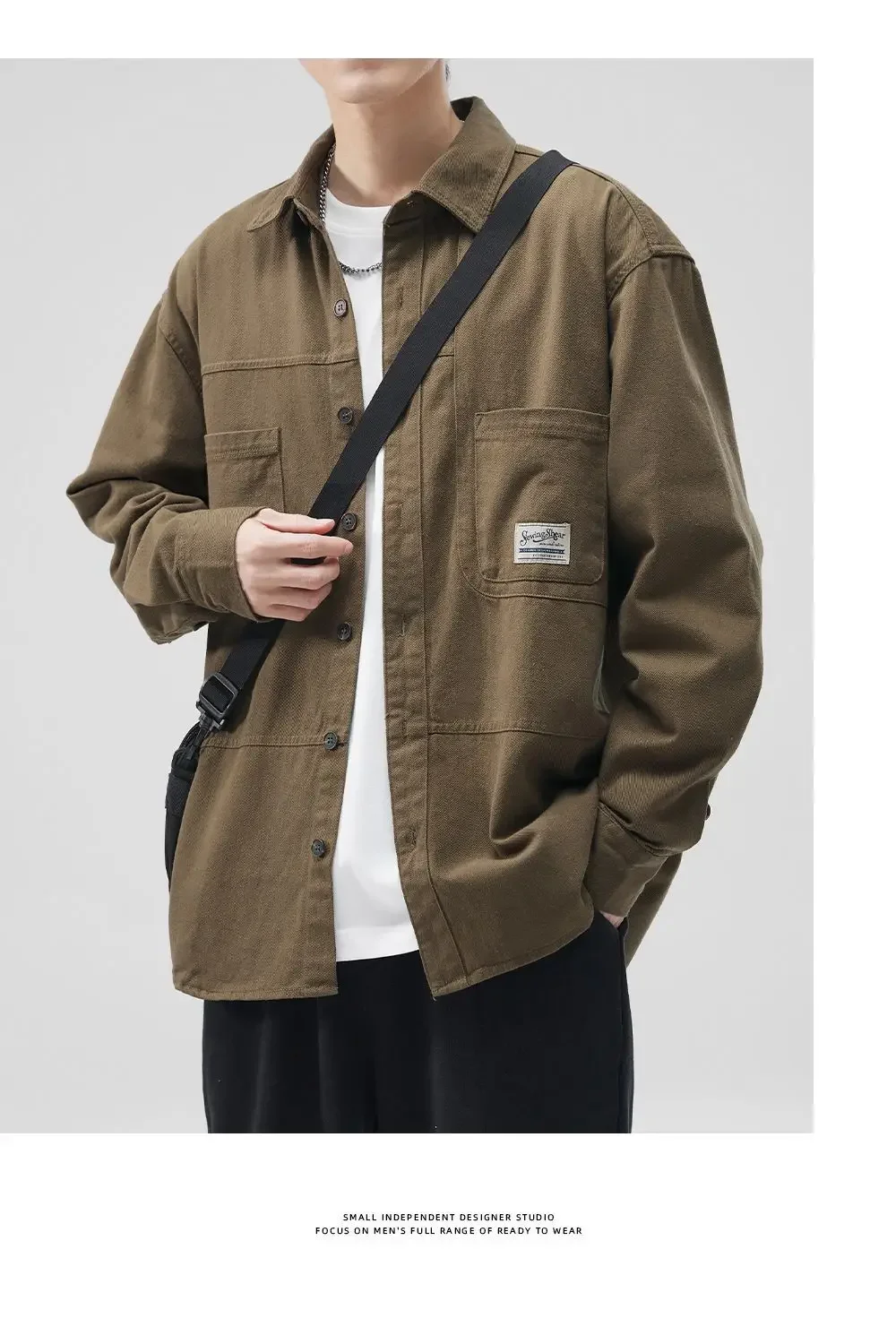 Retro Work Shirt Jacket for Men Spring and Autumn Casual Japanese Cotton Cardigan Loose Jacket