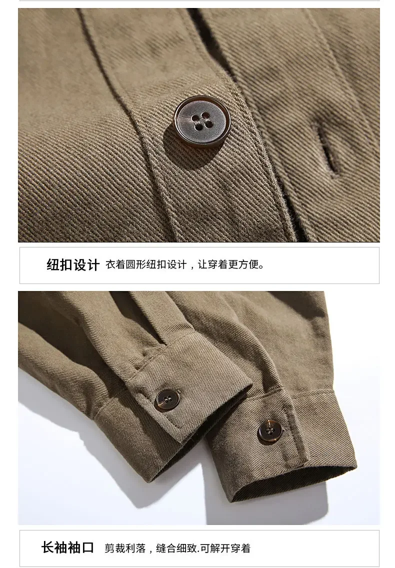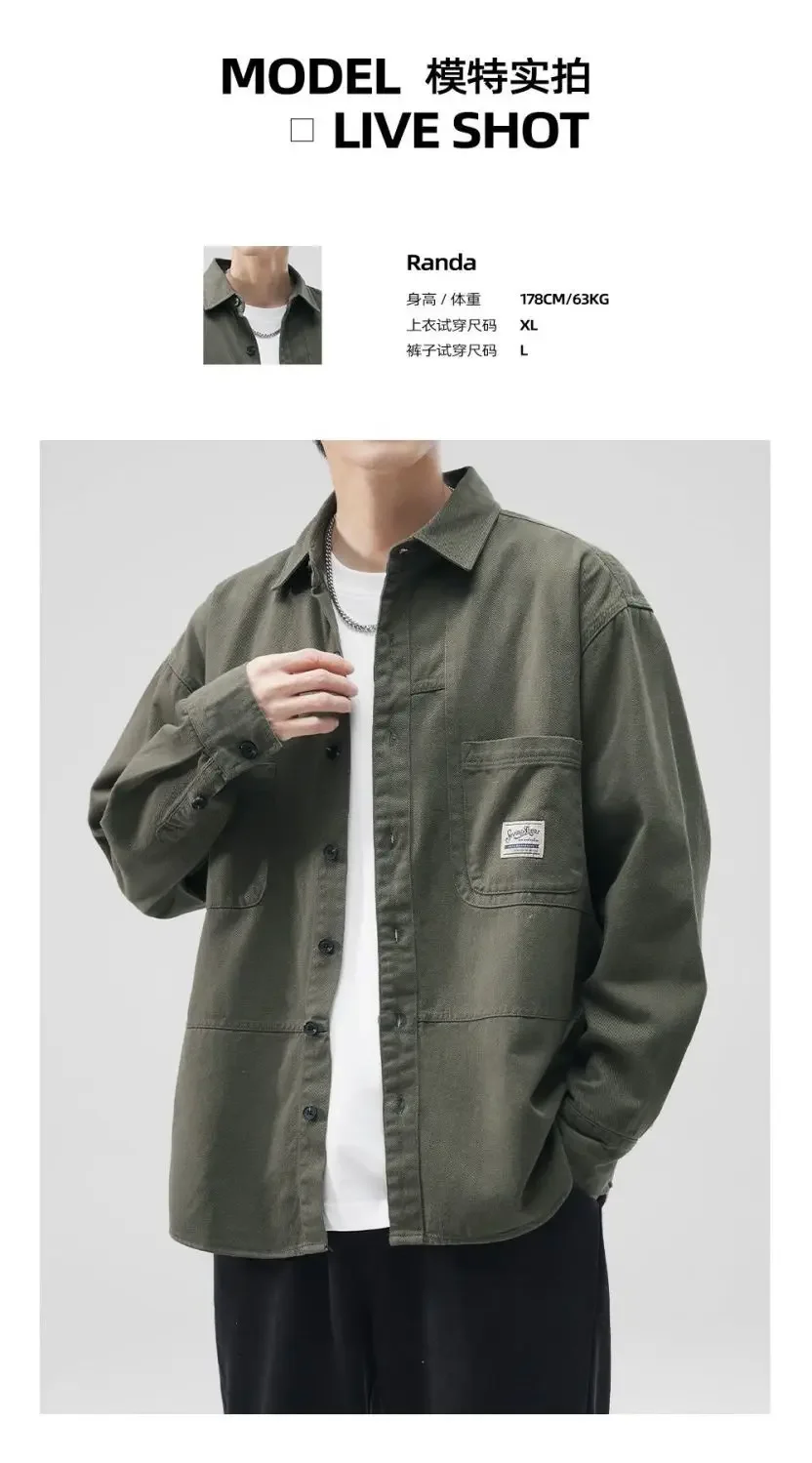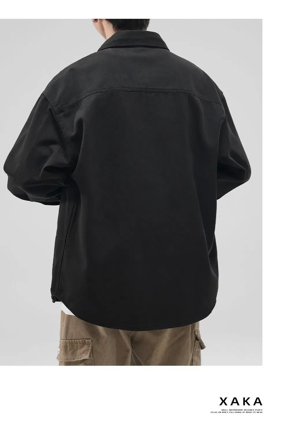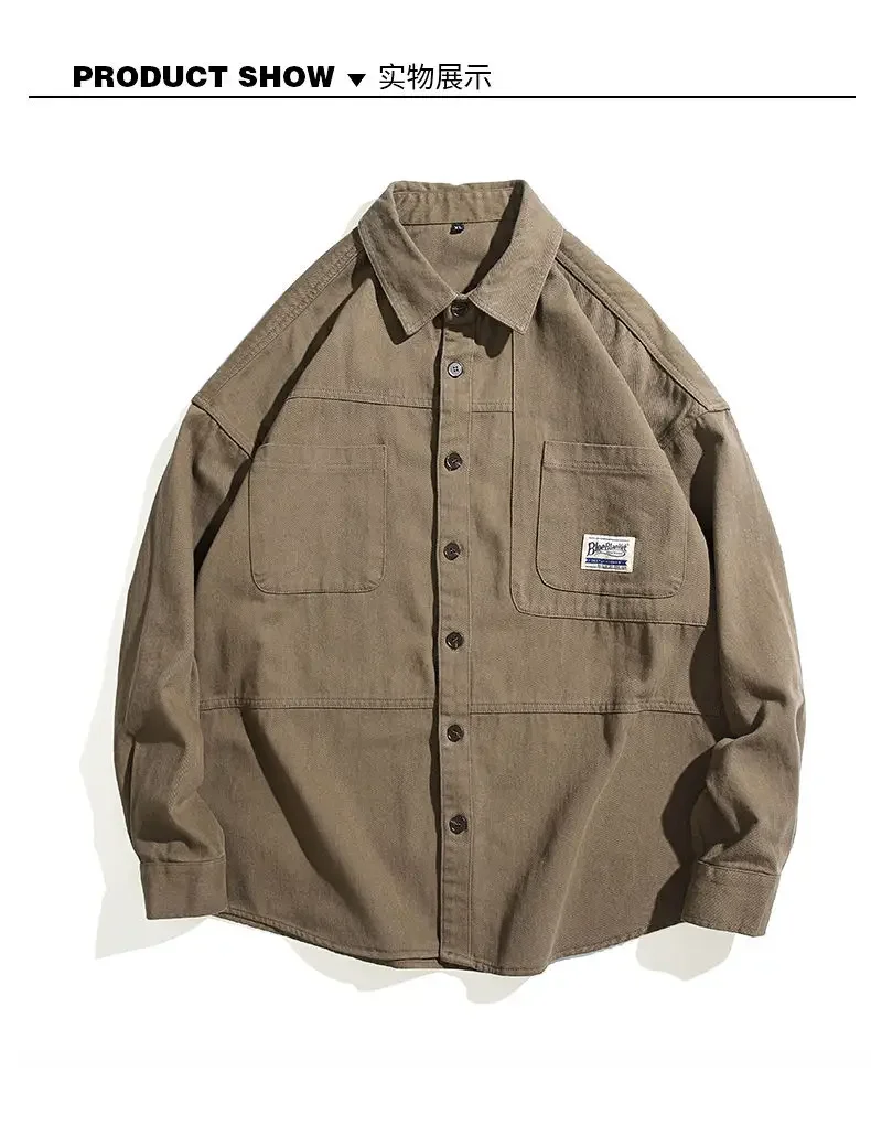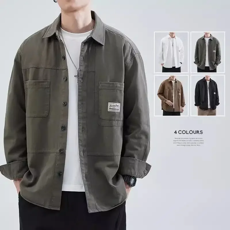 Retro Work Shirt Jacket for Men Spring and Autumn Casual Japanese Cotton Cardigan Loose Jacket
