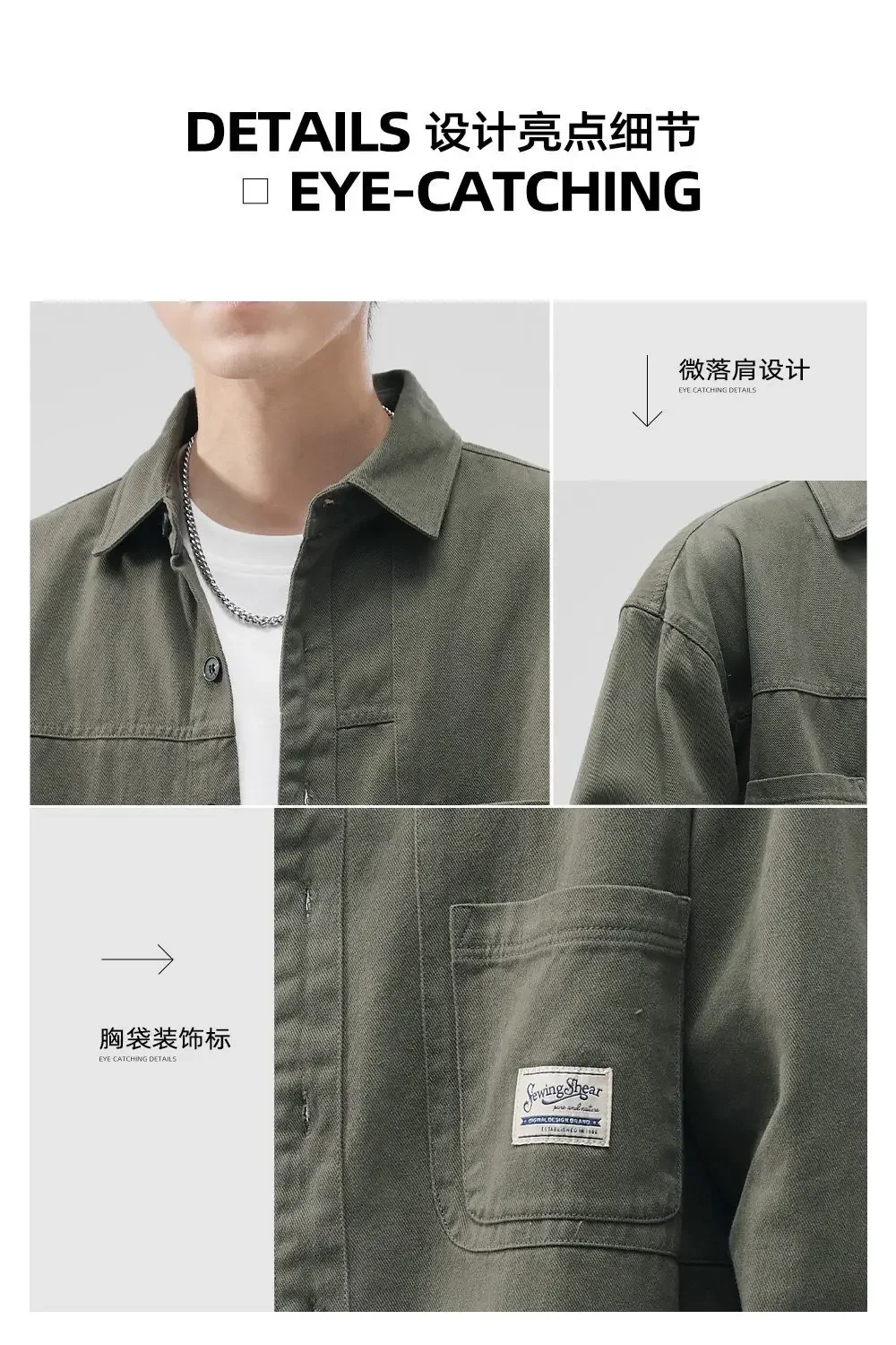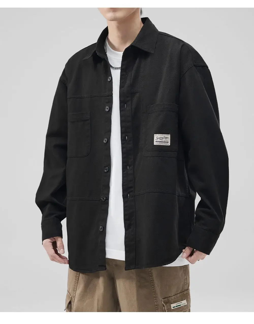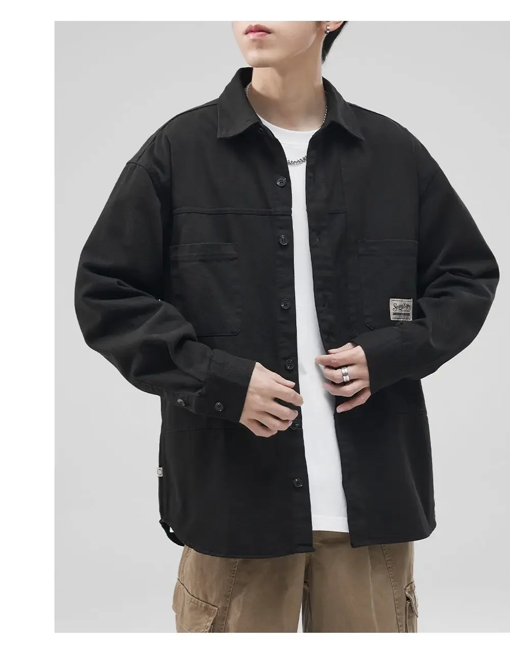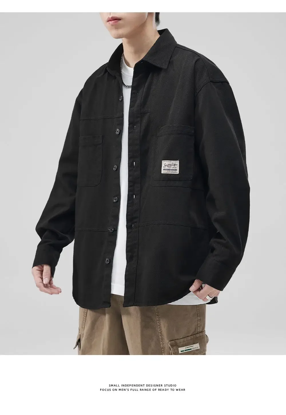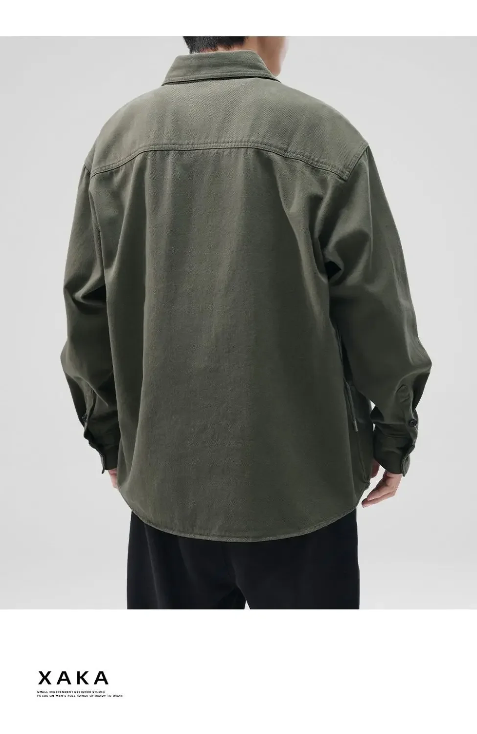 Retro Work Shirt Jacket for Men Spring and Autumn Casual Japanese Cotton Cardigan Loose Jacket