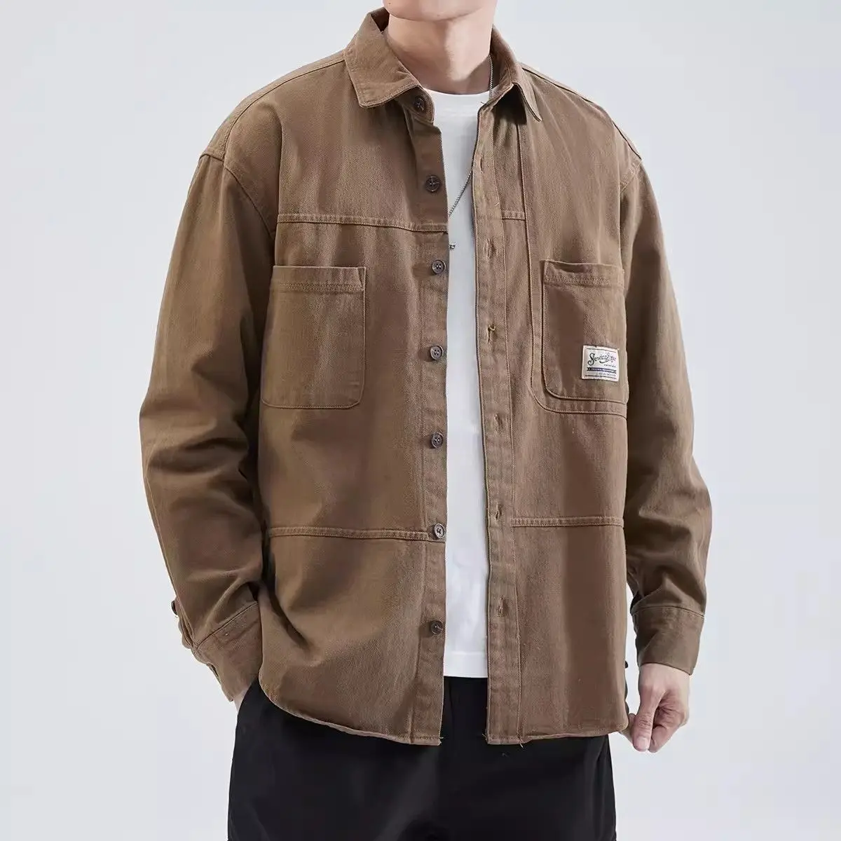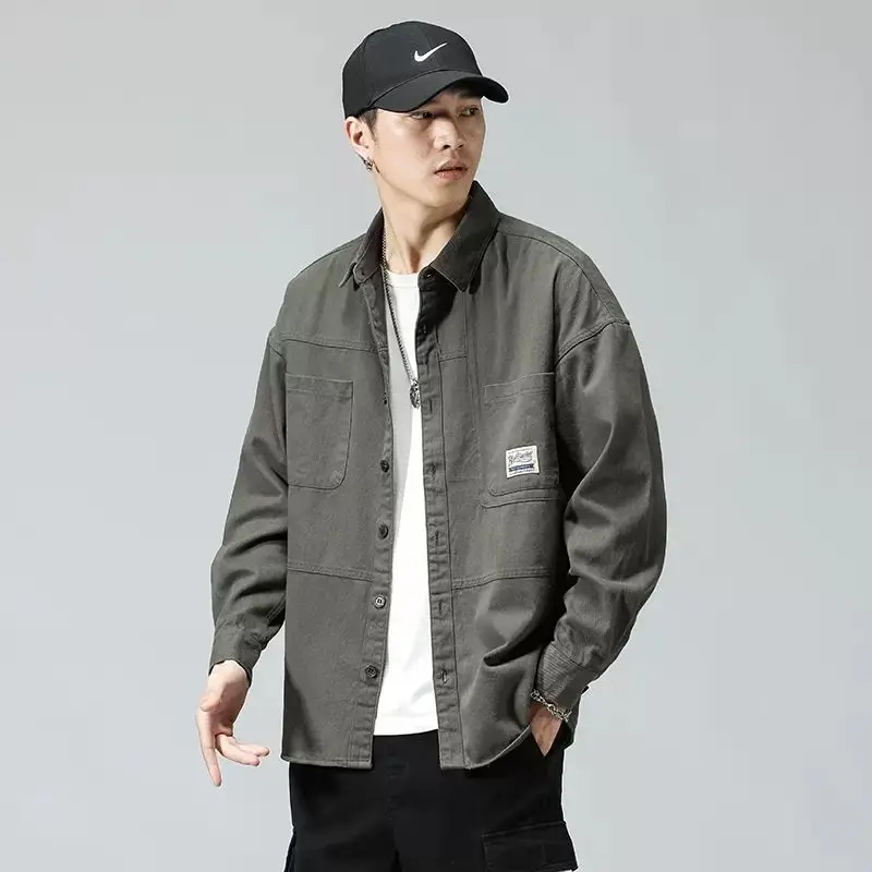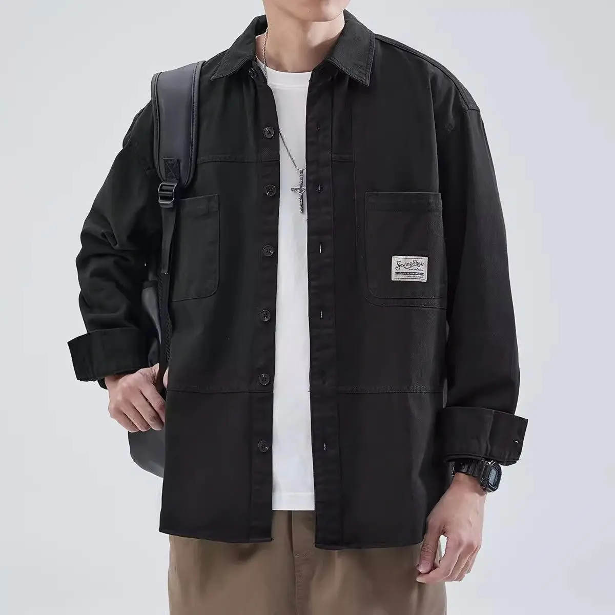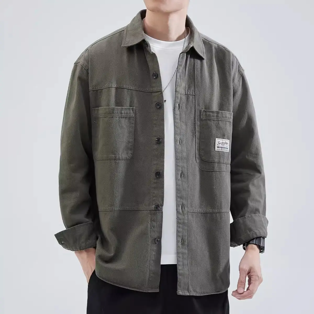 Retro Work Shirt Jacket for Men Spring and Autumn Casual Japanese Cotton Cardigan Loose Jacket