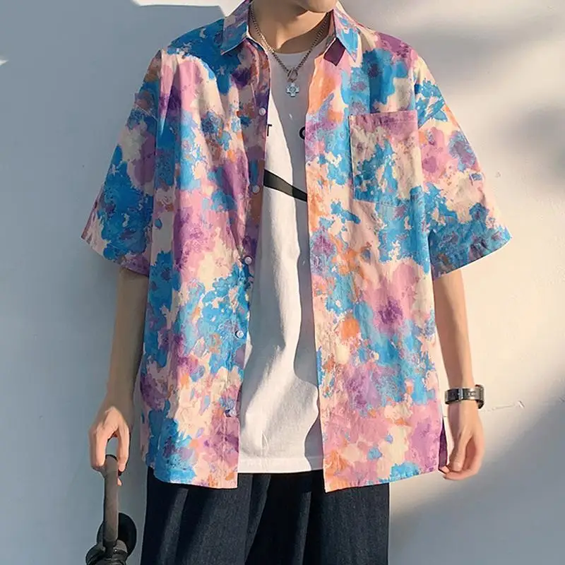 Tie-dye Shirt Floral Short-sleeved Men Summer Trendy Thin Hong Kong Style Personalized Loose Cardigan