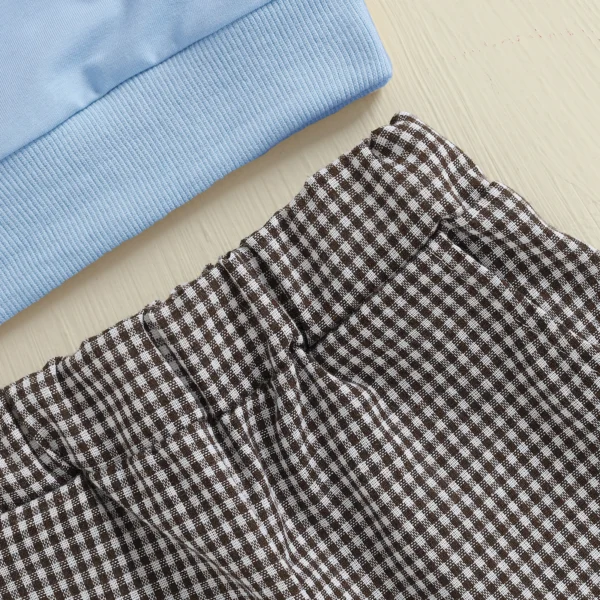 Toddler Boys Thanksgiving Outfits Turkey Embroidery Sweatshirts and Plaid Long Pants 2Pcs Clothes Set